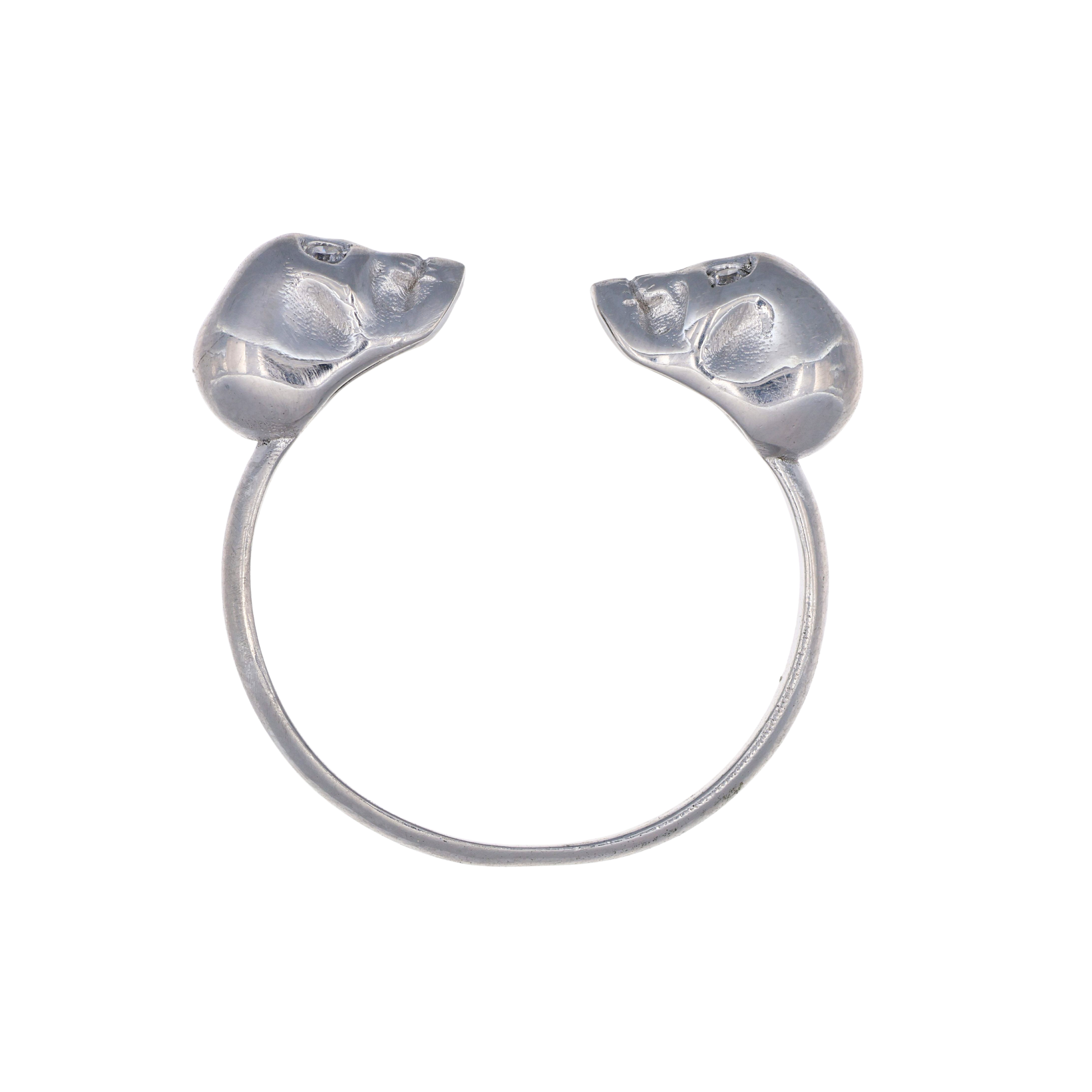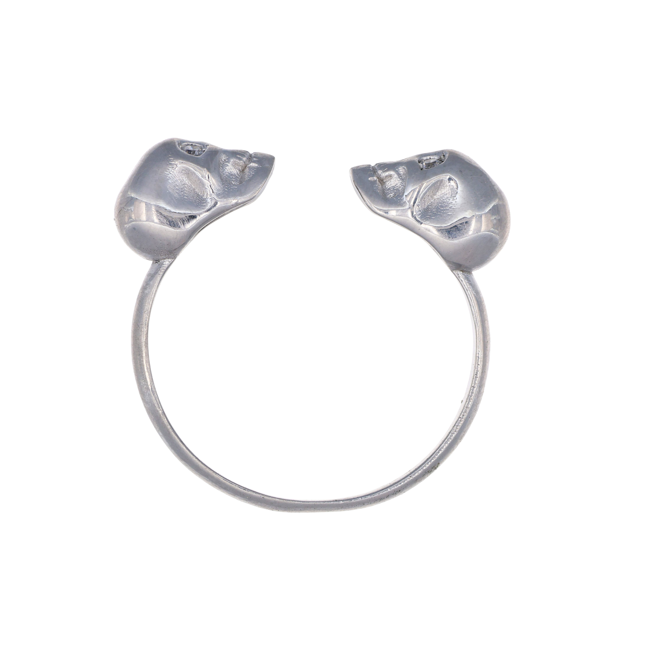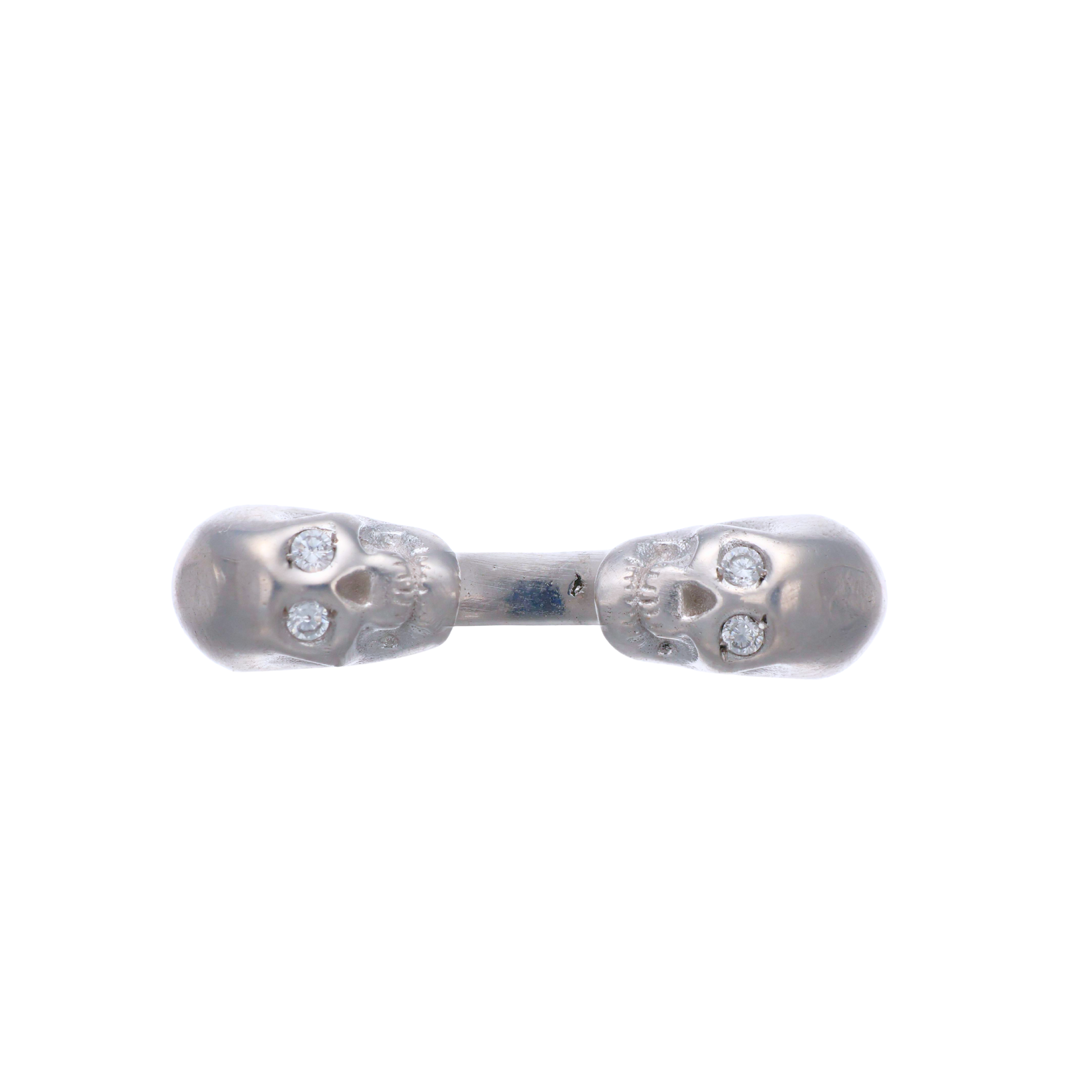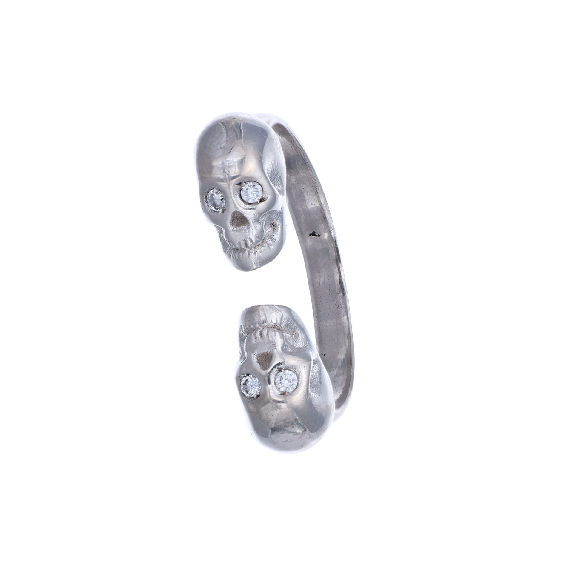 A symbol of strength and individuality. This 925 sterling silver ring, entirely crafted in Italy, features a double skull design that embodies bold elegance and character. Each stone is hand-set one by one, showcasing exceptional craftsmanship and meticulous attention to detail.
