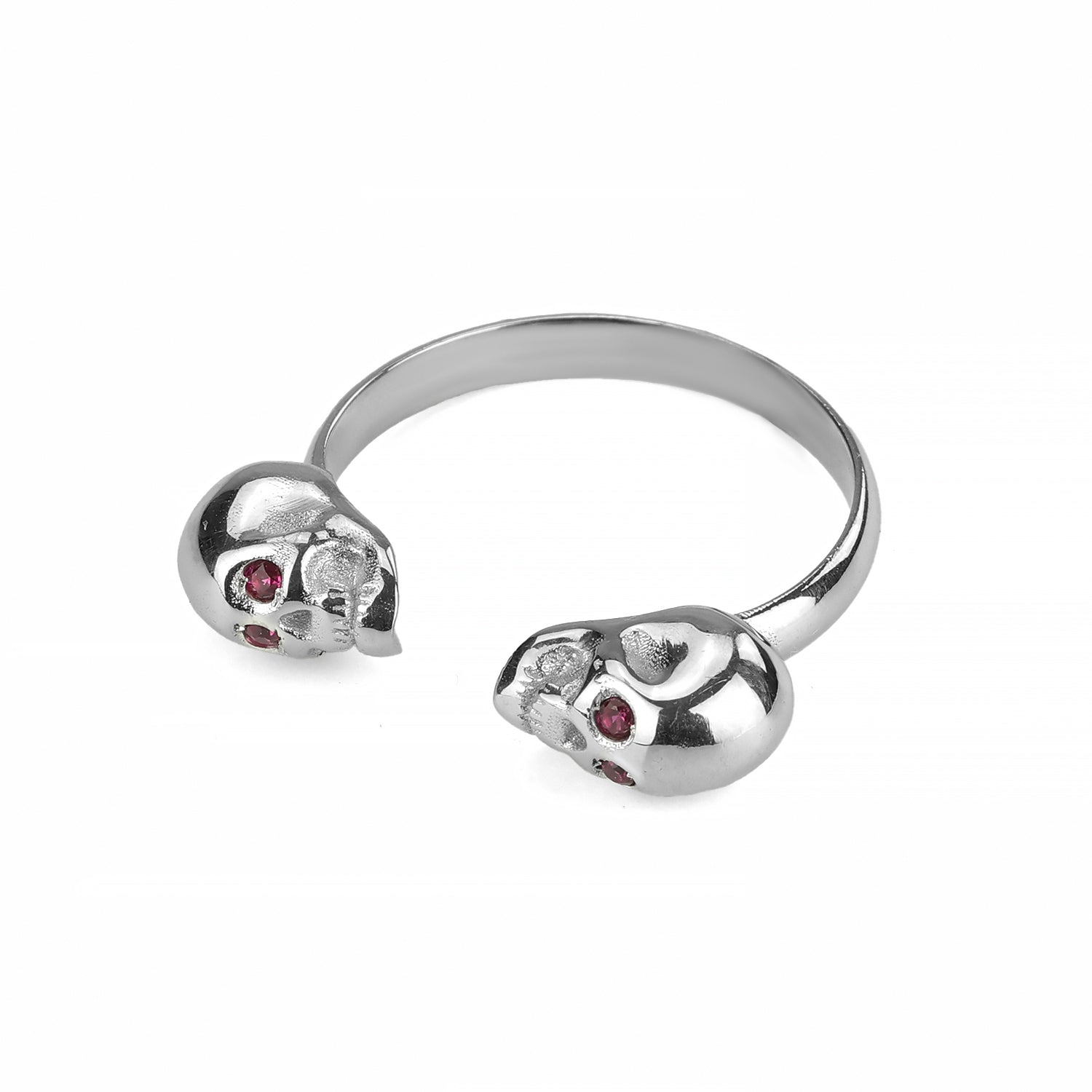 A symbol of strength and individuality. This 925 sterling silver ring, entirely crafted in Italy, features a double skull design that embodies bold elegance and character. Each stone is hand-set one by one, showcasing exceptional craftsmanship and meticulous attention to detail.