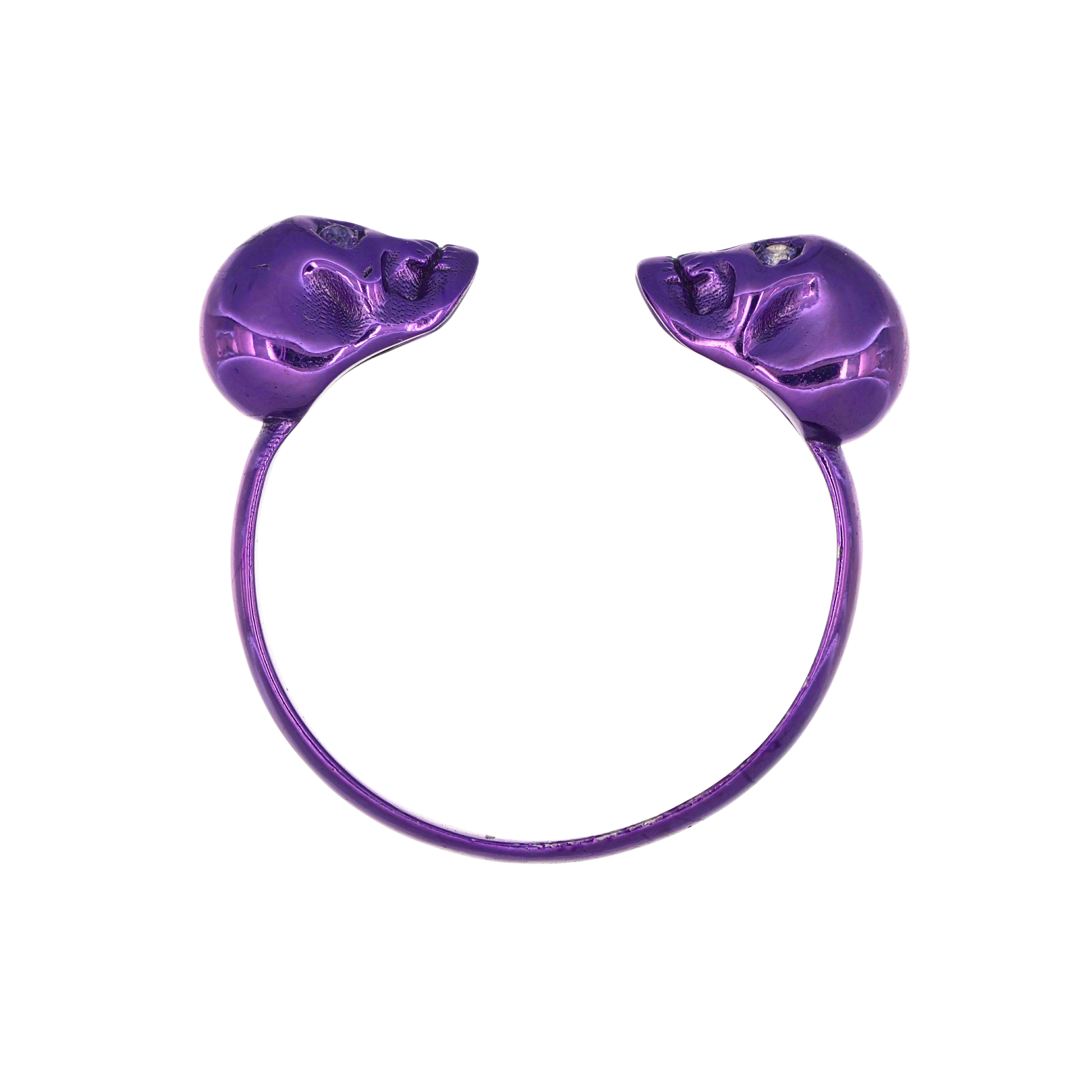 Double Skull Ring With Purple Nanoceramic Coating And Violet Stones