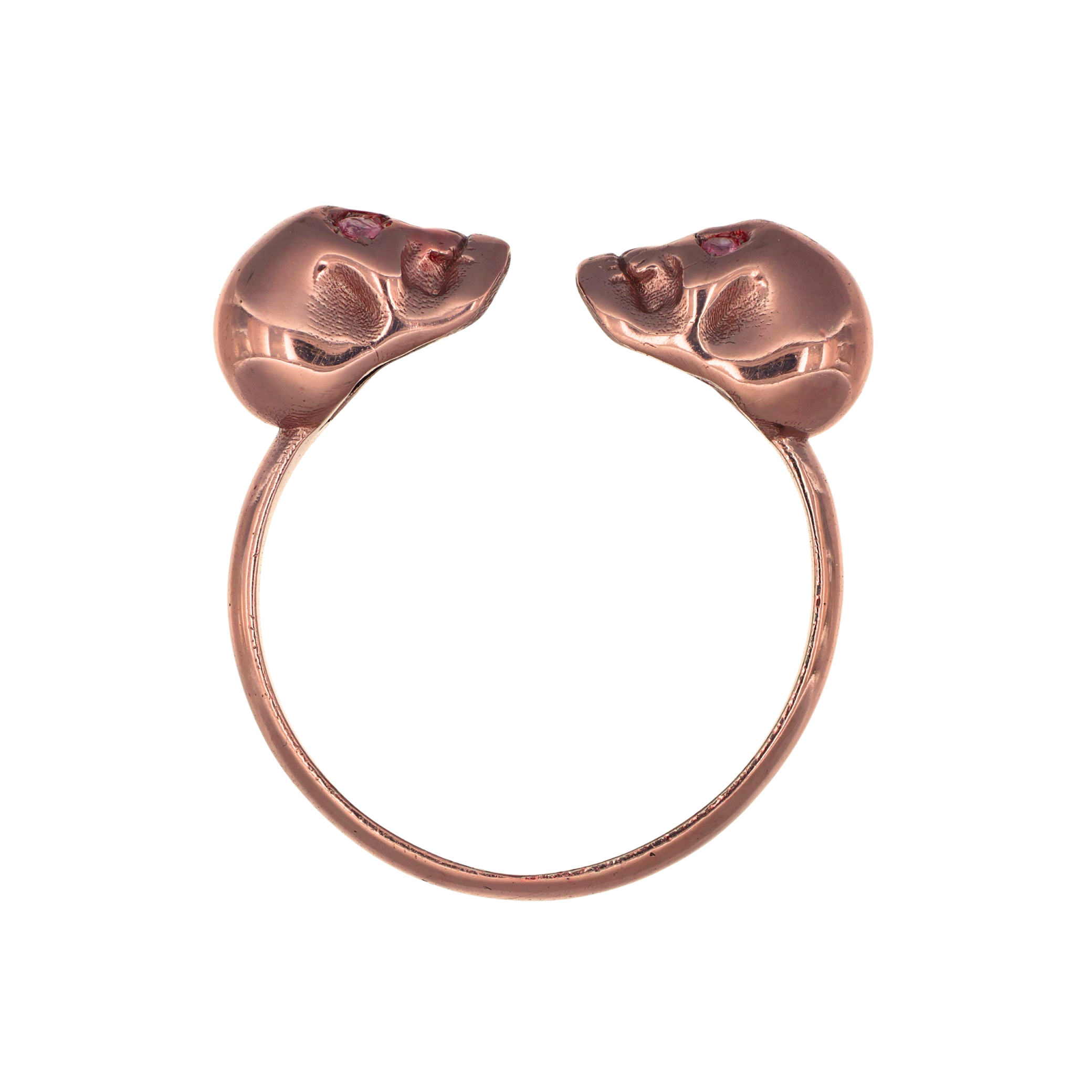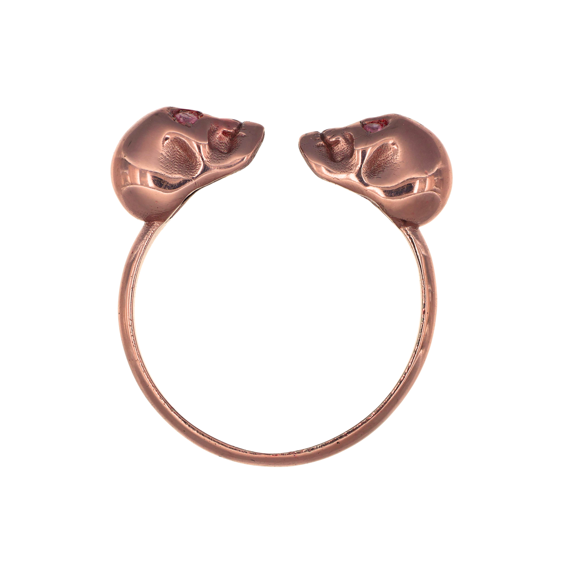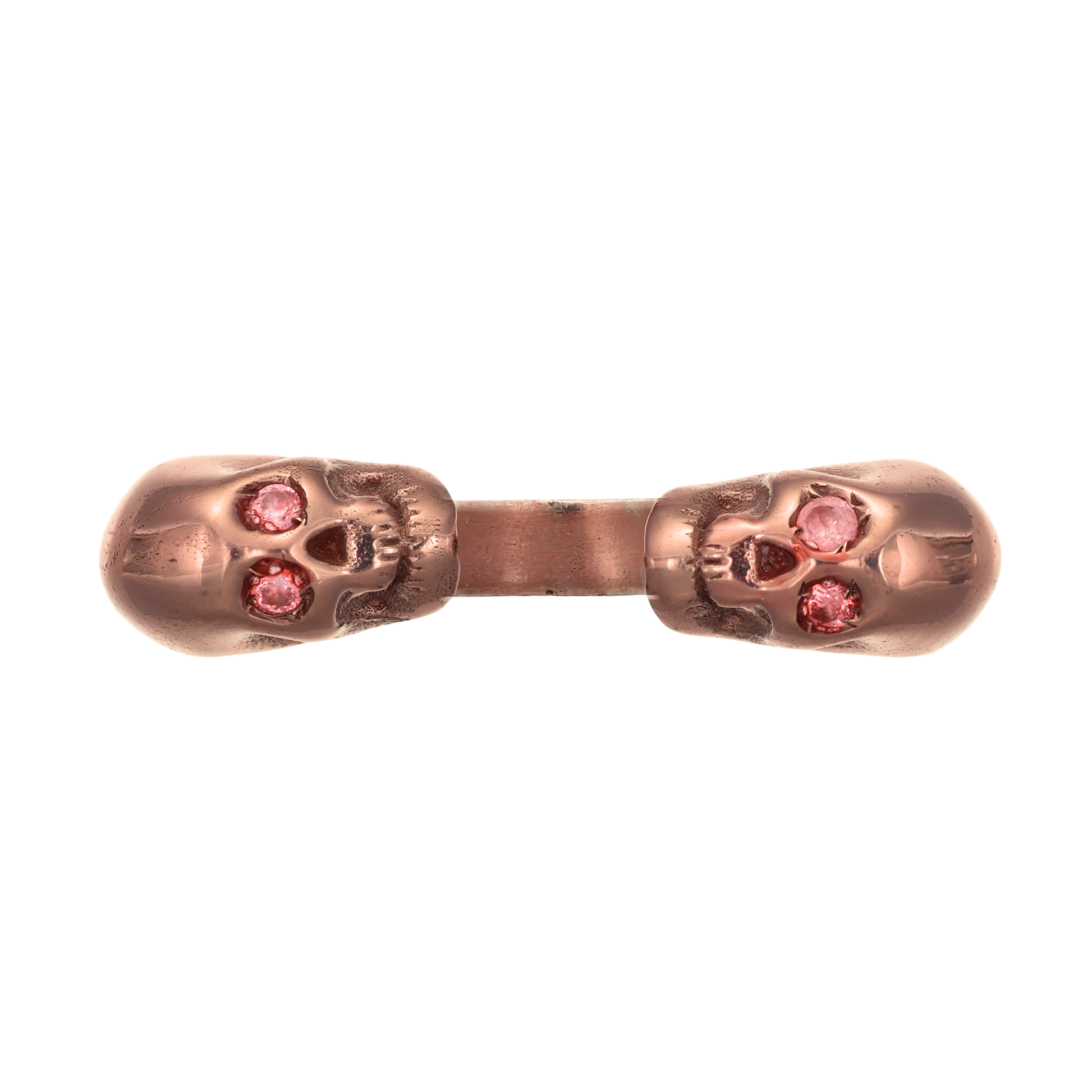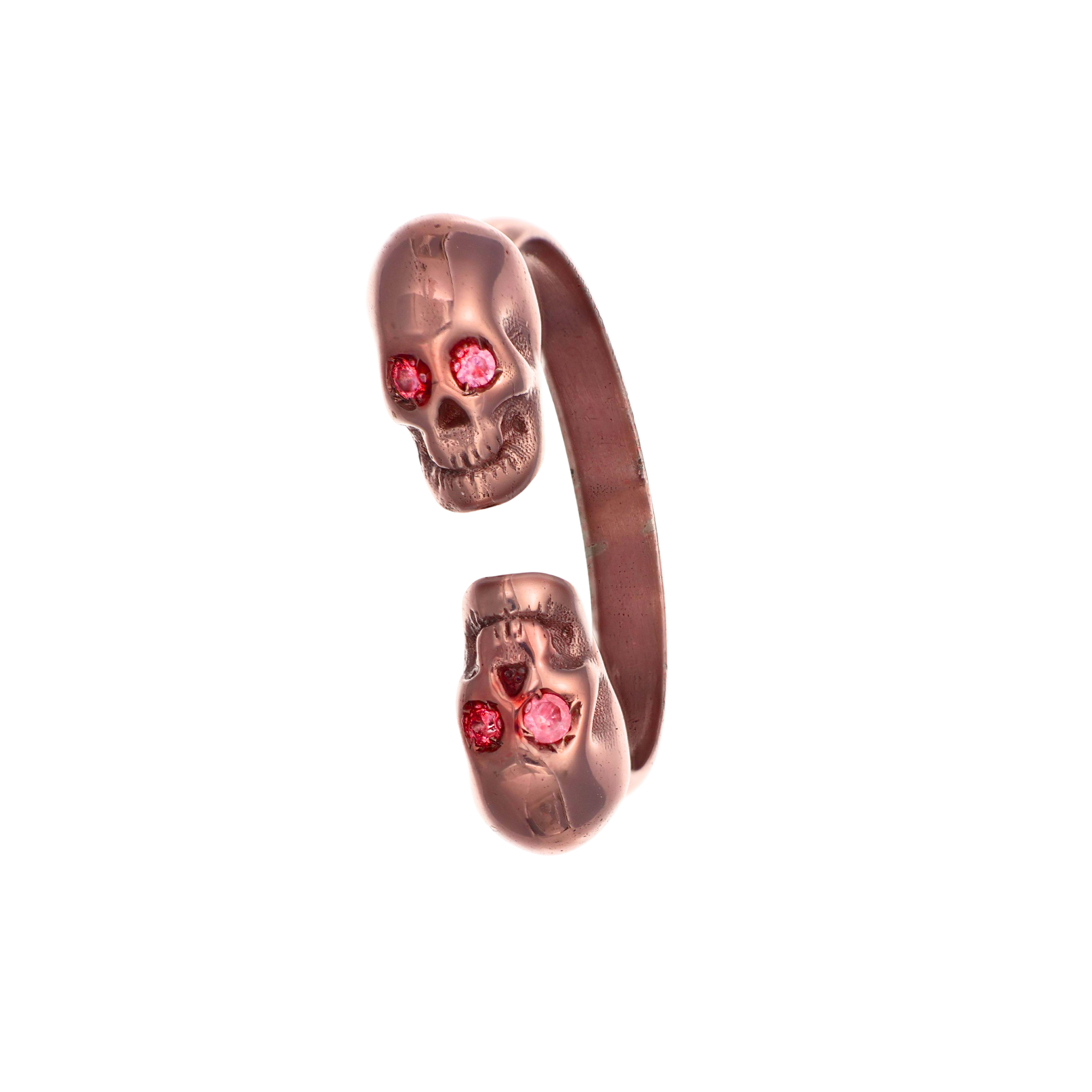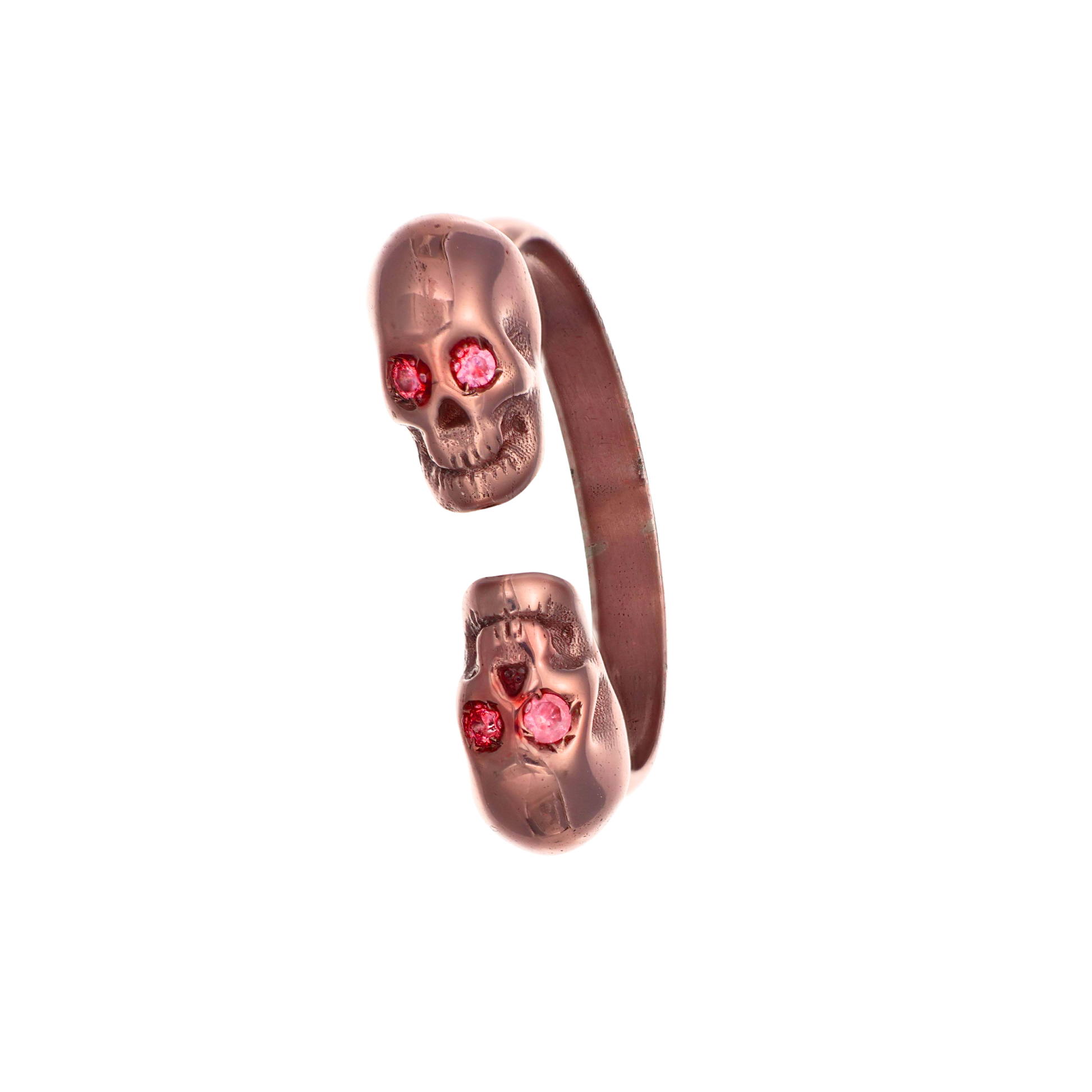 Double Skull Ring With Pink Nanoceramic Coating And Pink Stones