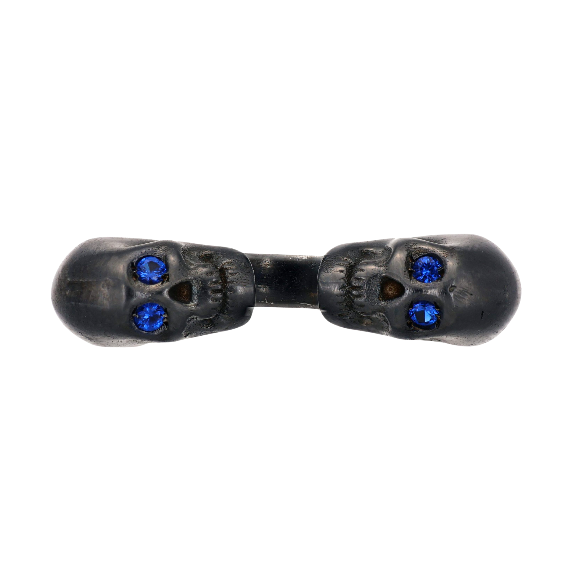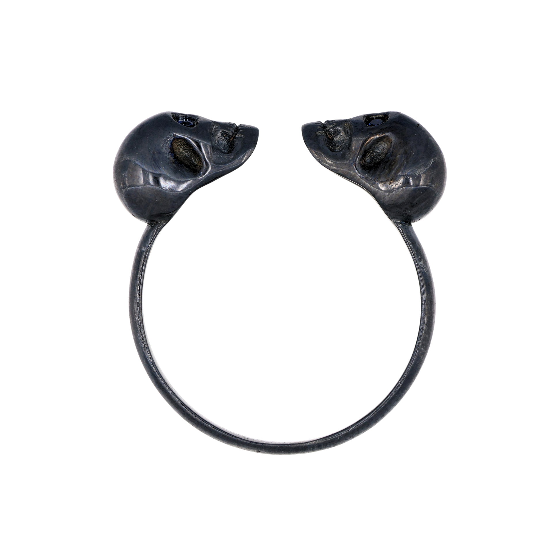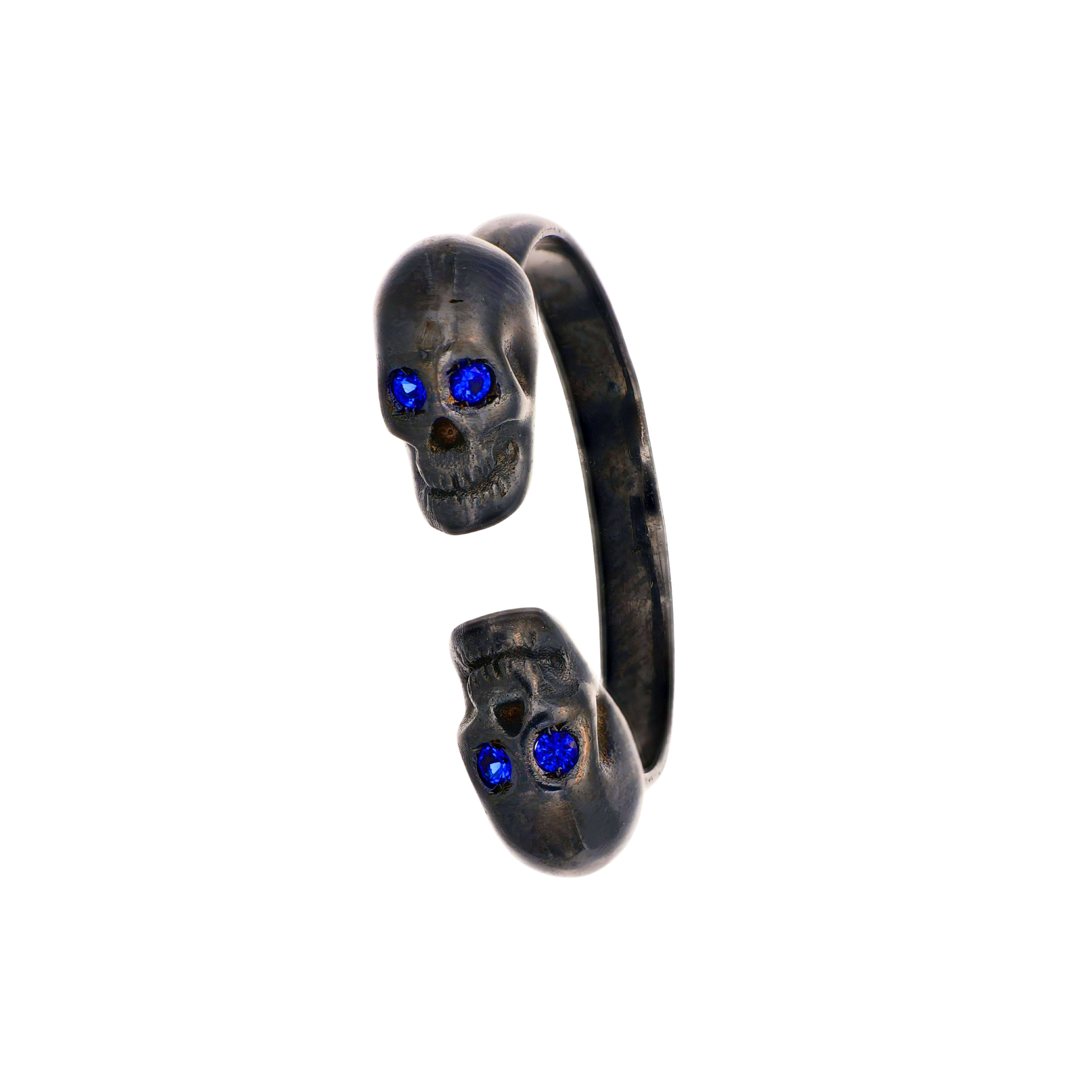 A symbol of strength and individuality. This 925 sterling silver ring, entirely crafted in Italy, features a double skull design that embodies bold elegance and character. Each stone is hand-set one by one, showcasing exceptional craftsmanship and meticulous attention to detail.