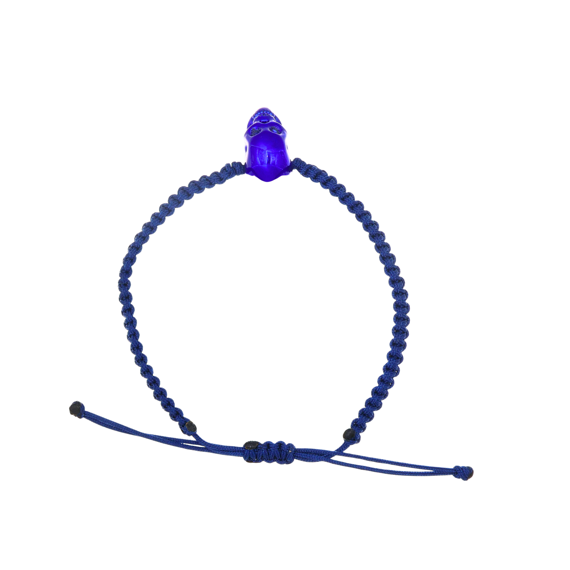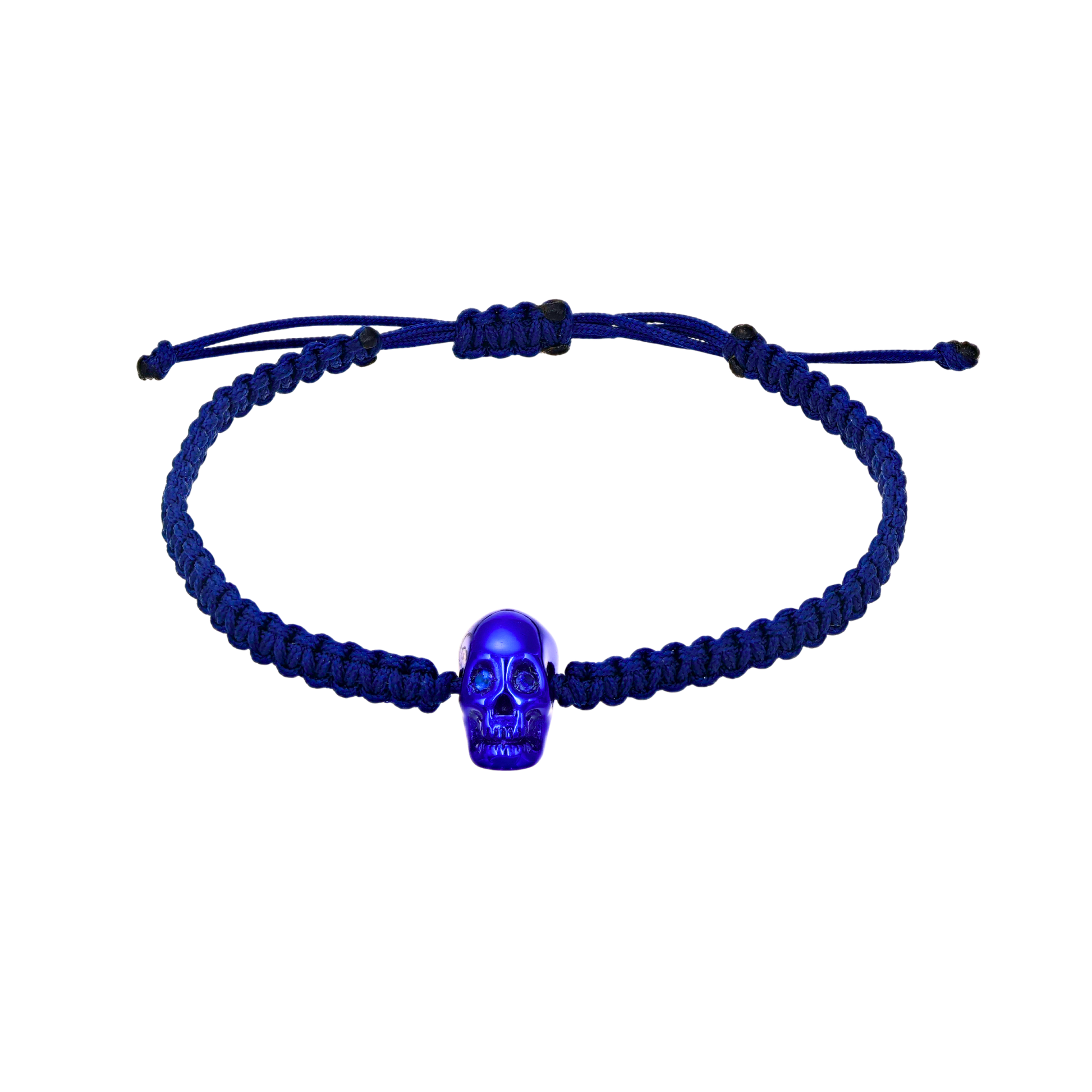Blue Braided Bracelet With Smooth Skull Blue Nanoceramic And Blue Stones