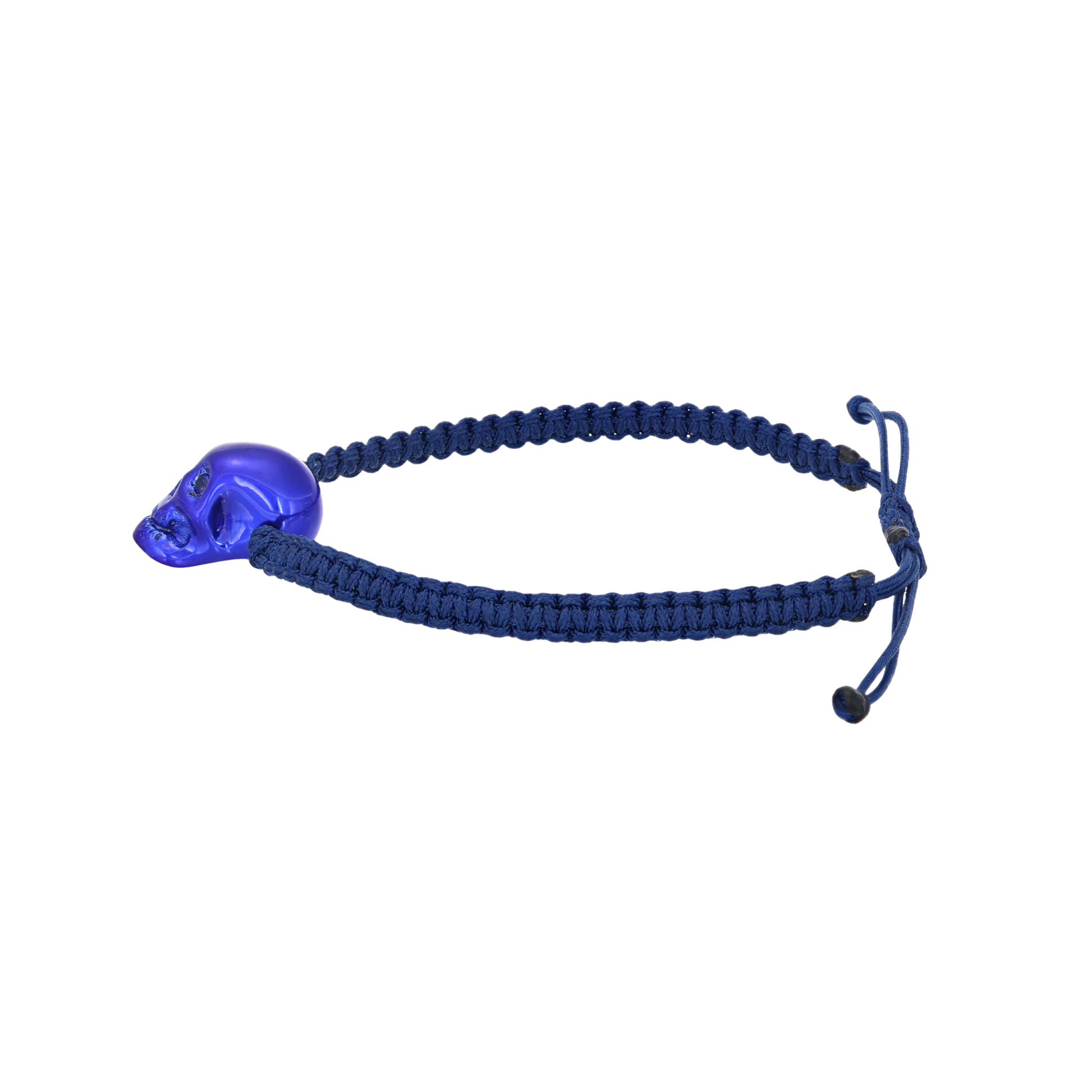 A striking combination of craftsmanship and style. This braided, adjustable bracelet is entirely crafted in Italy, featuring a smooth skull in 925 sterling silver adorned with hand-set stones, each placed with meticulous attention to detail.