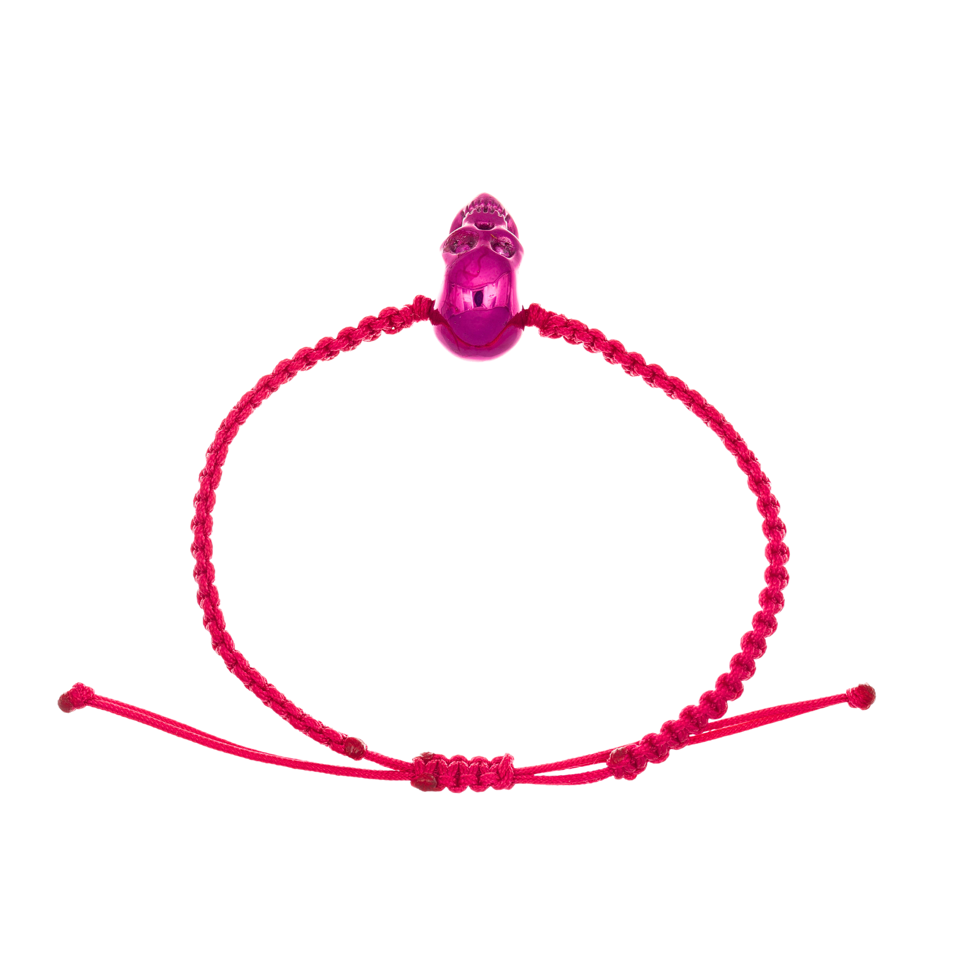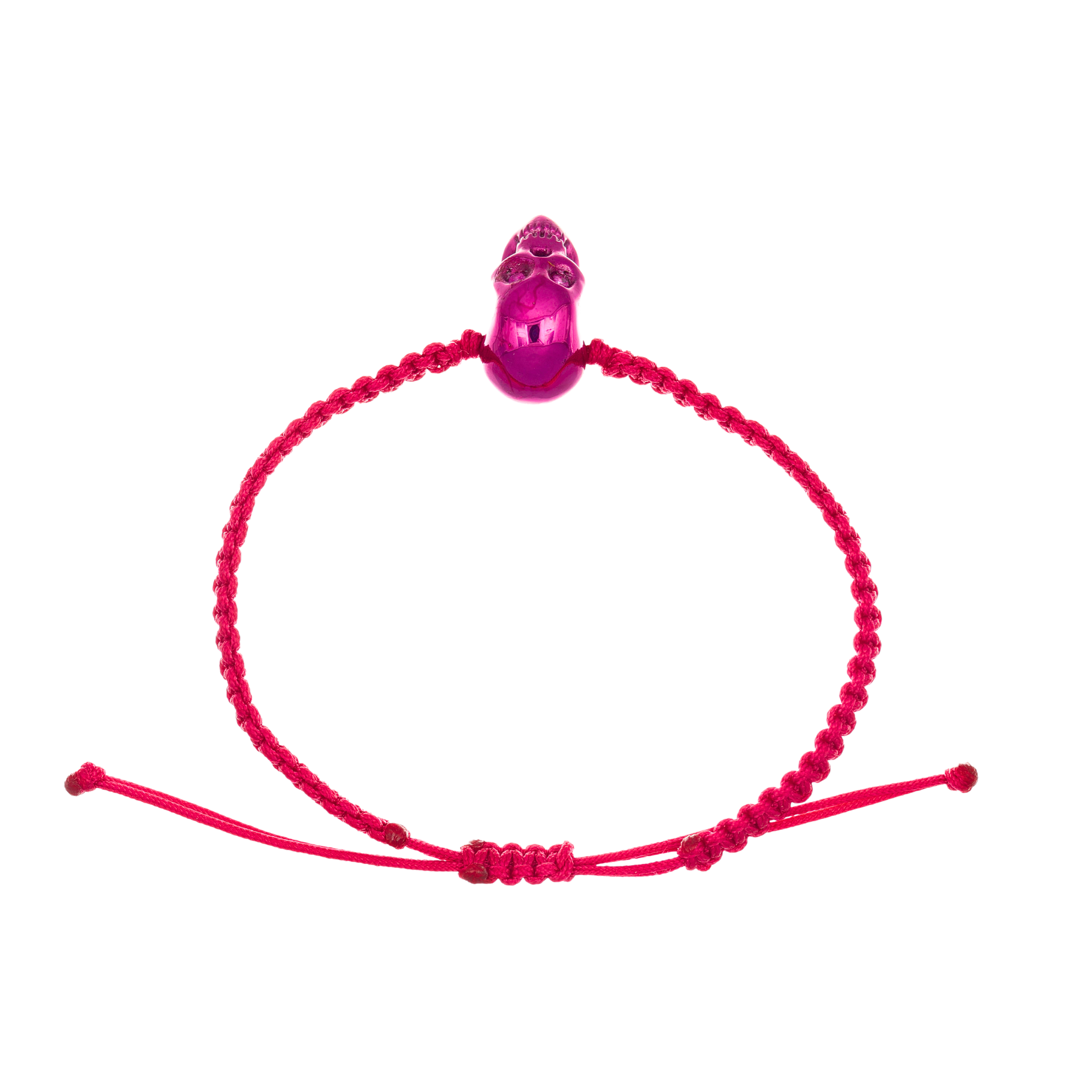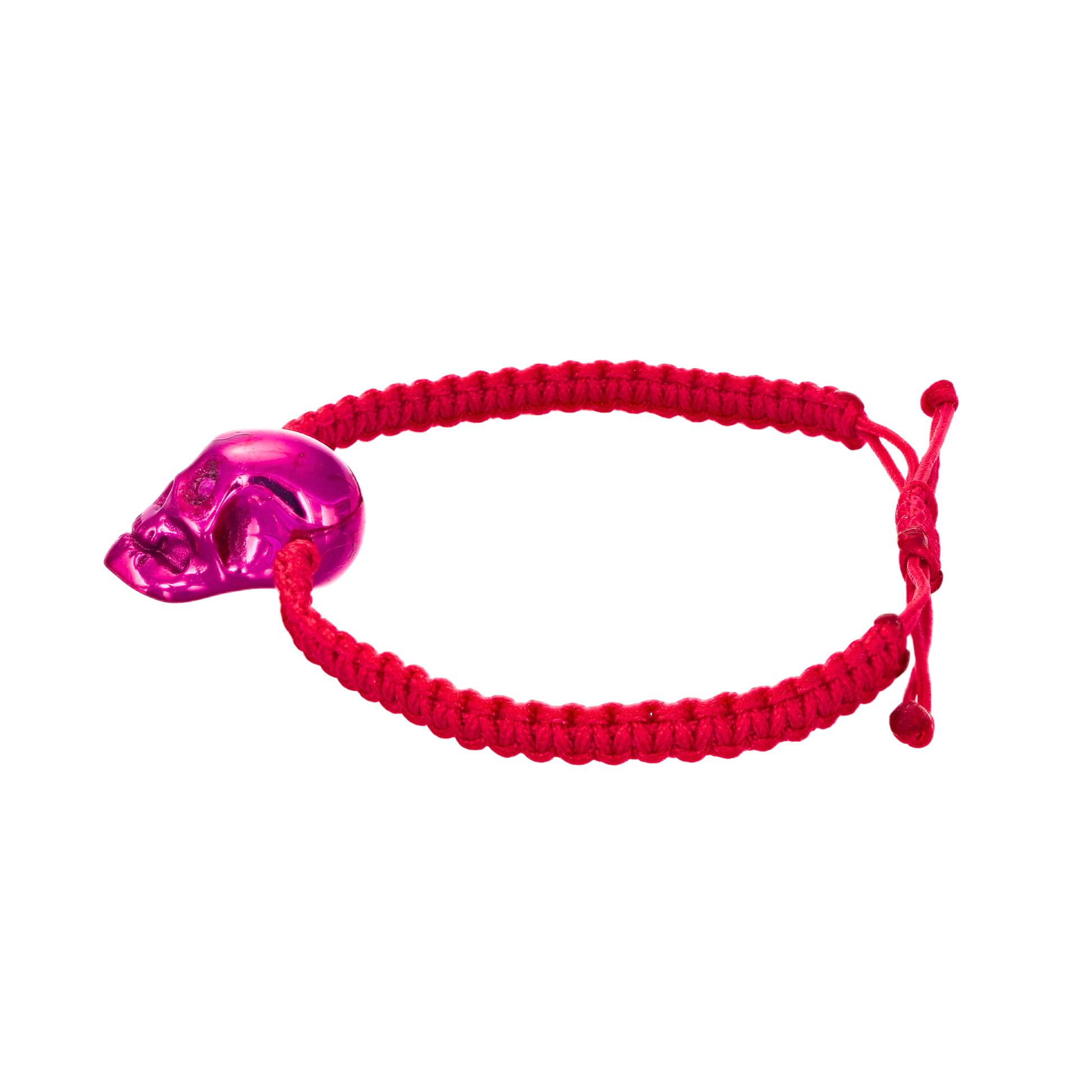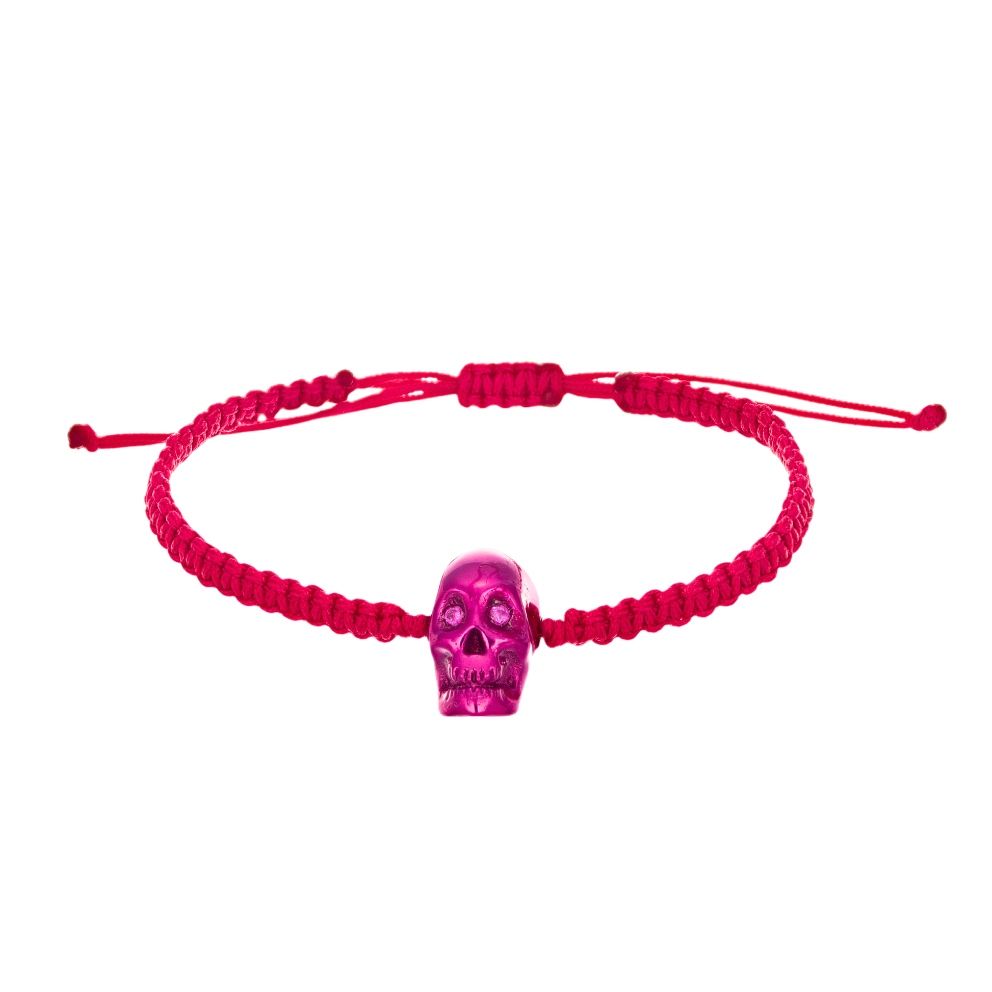 Fuchsia Braided Bracelet With Smooth Skull Fuchsia Nanoceramic And Fuchsia Stones