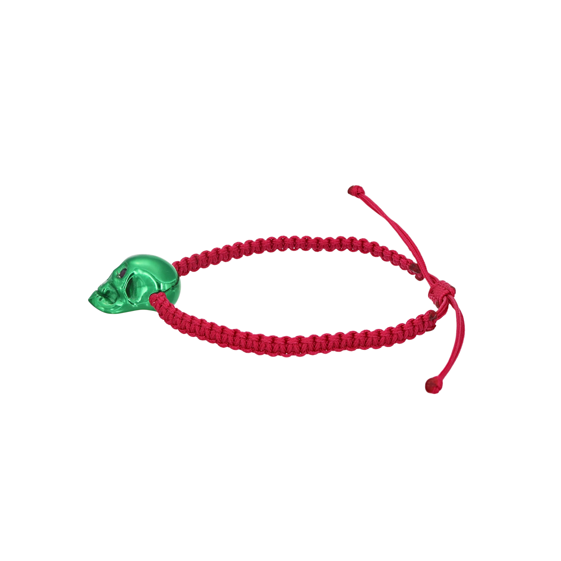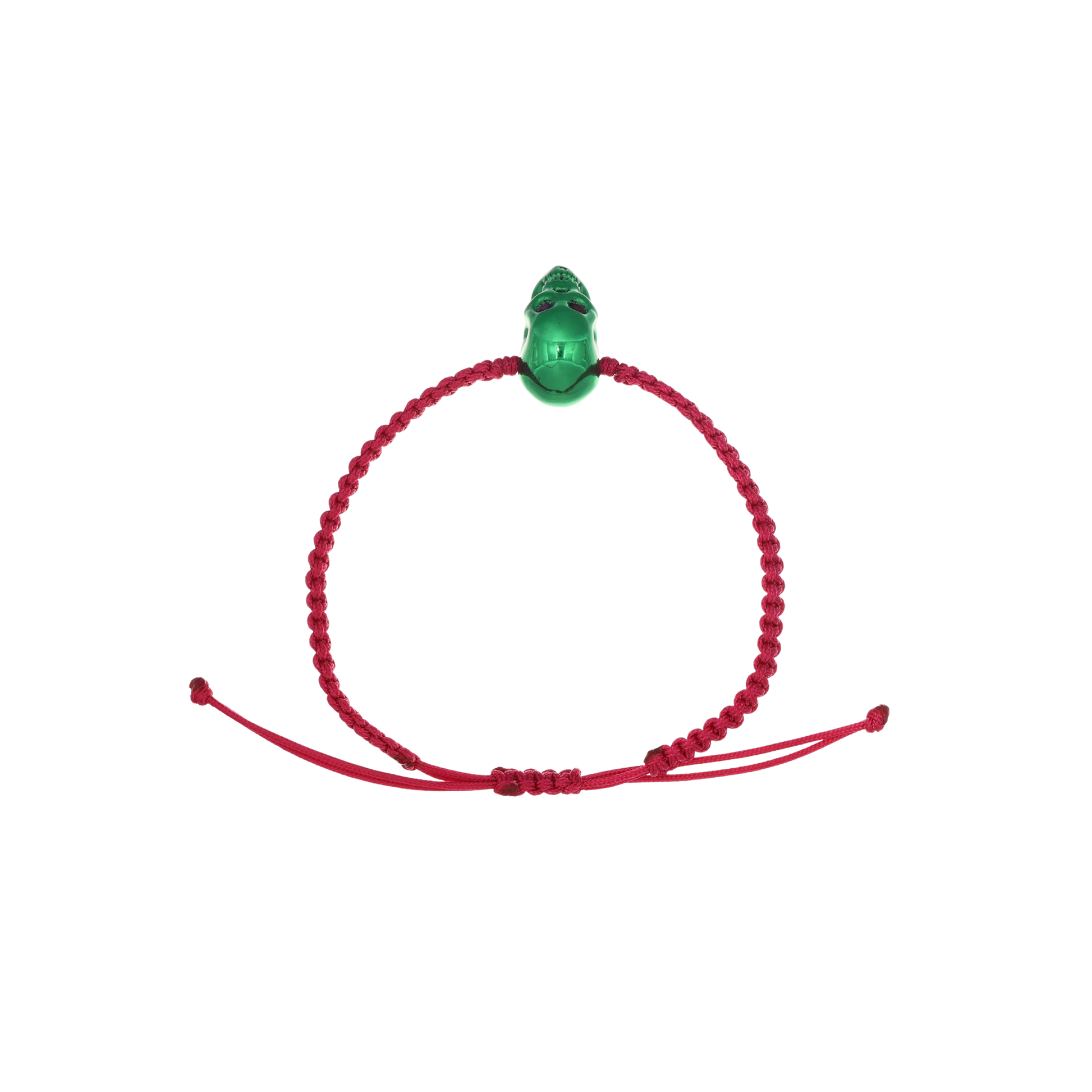 Fuchsia Braided Bracelet With Smooth Skull XL Green Nanoceramic And Fuchsia Stones