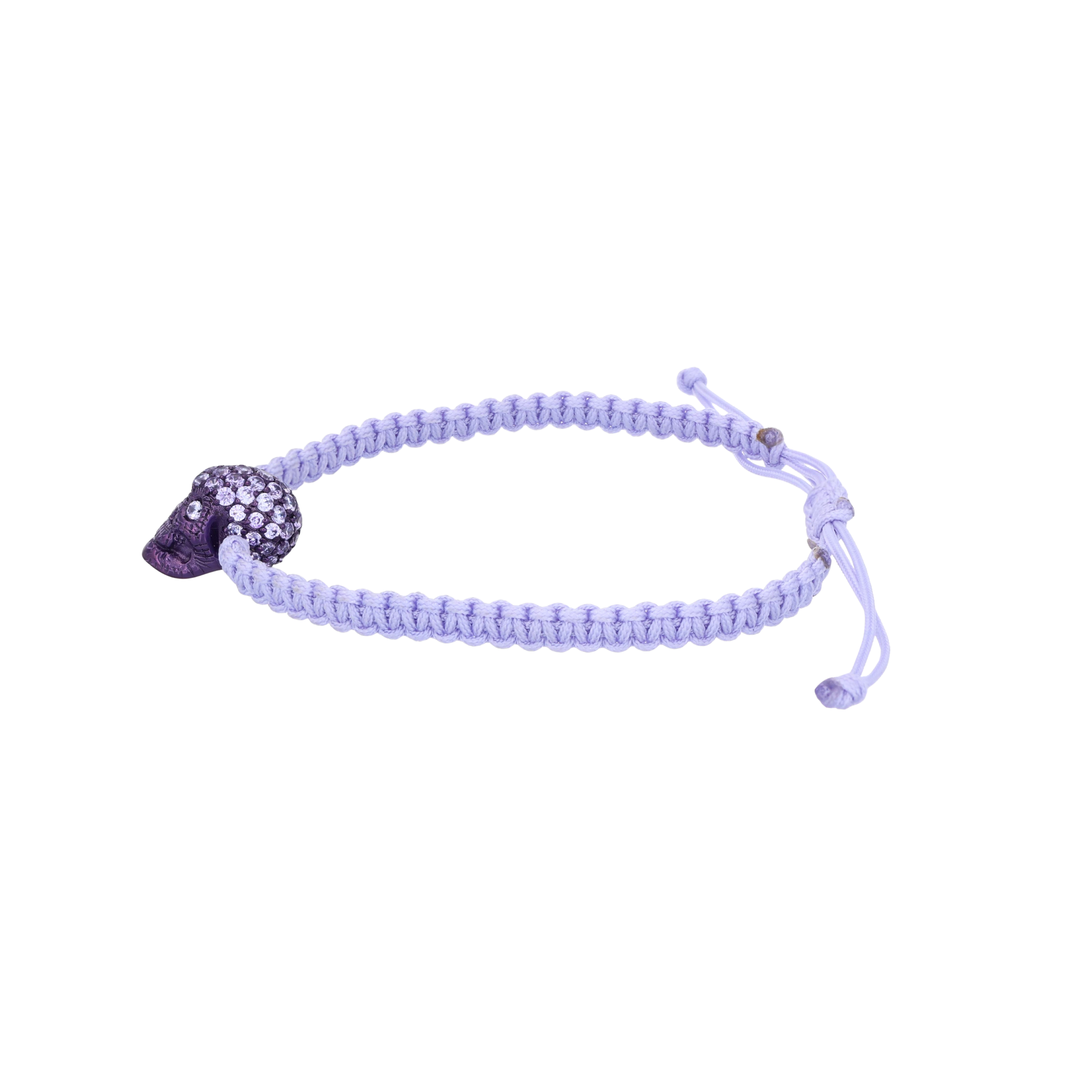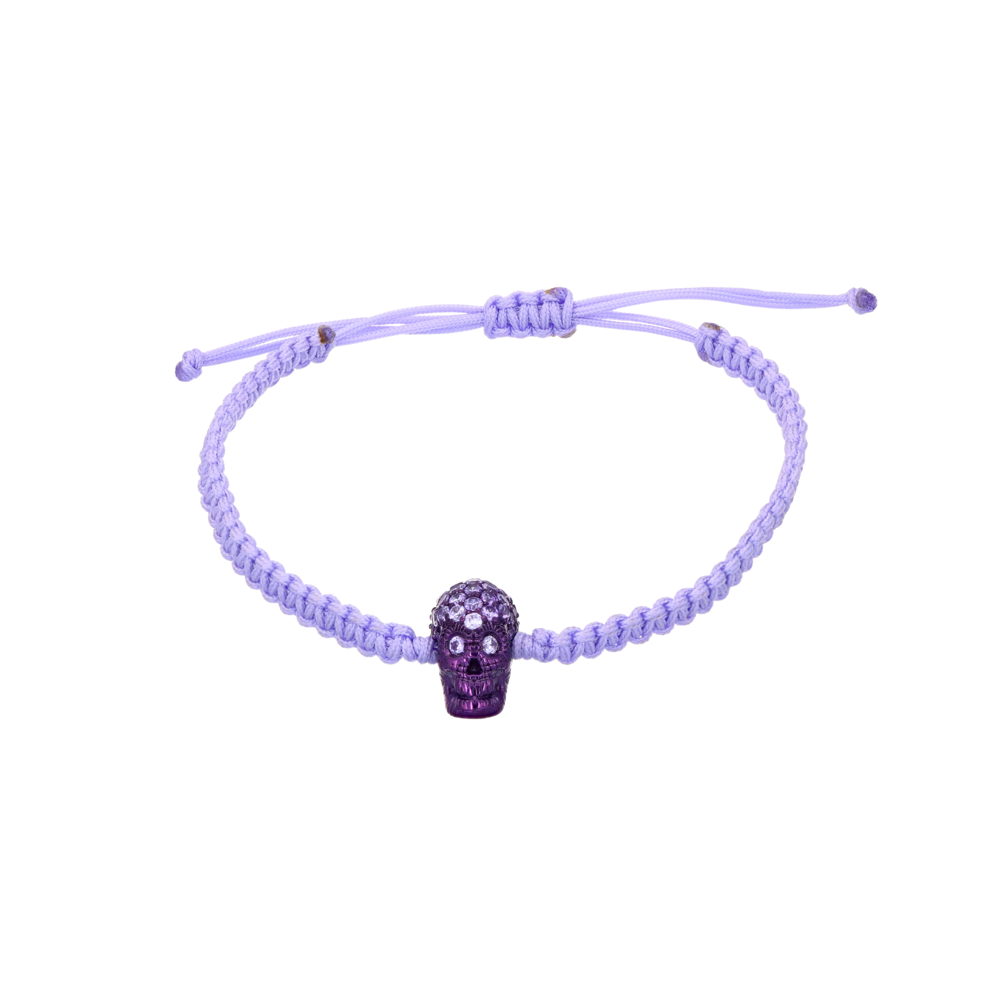 Violet Braided Bracelet with Pavé Skull with Purple Nanoceramic Coating and Violet Stones