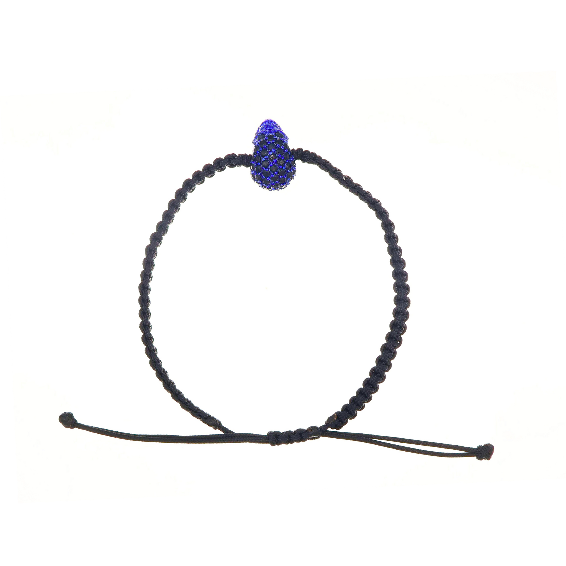 A striking combination of craftsmanship and style. This braided, adjustable bracelet is entirely crafted in Italy, featuring a smooth pavé skull in 925 sterling silver adorned with hand-set stones, each placed with meticulous attention to detail.