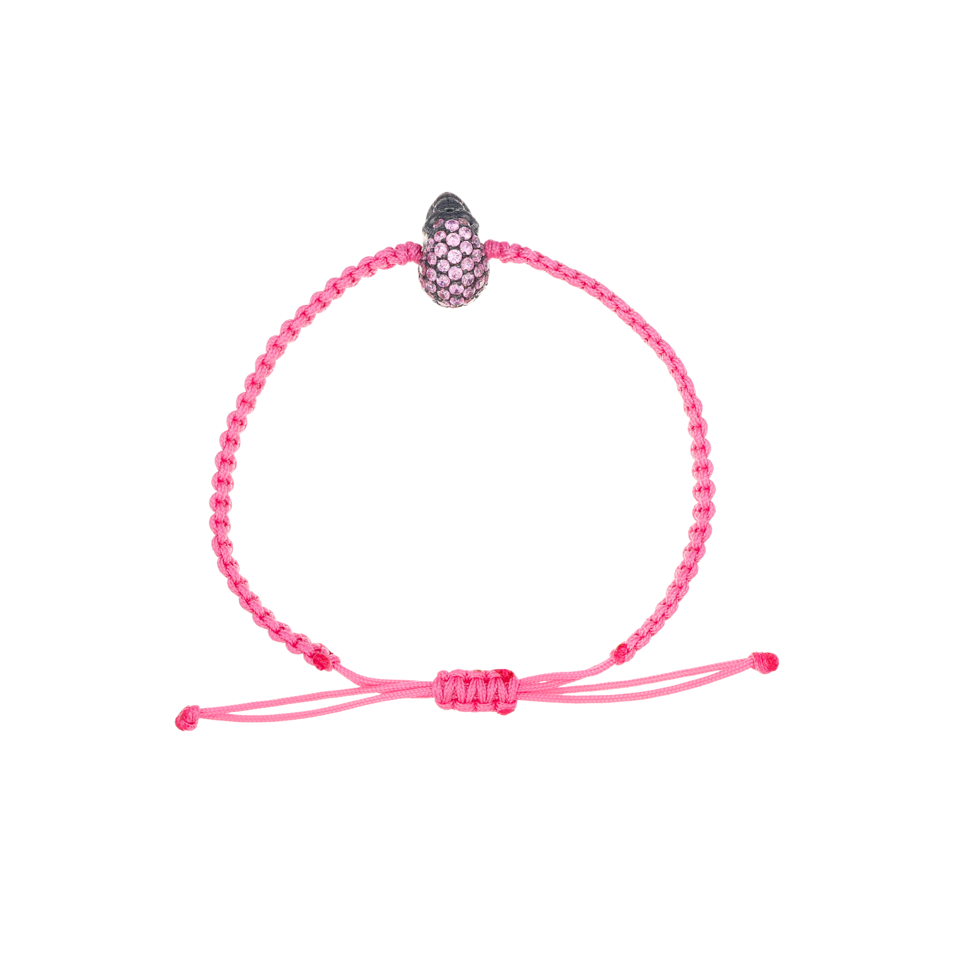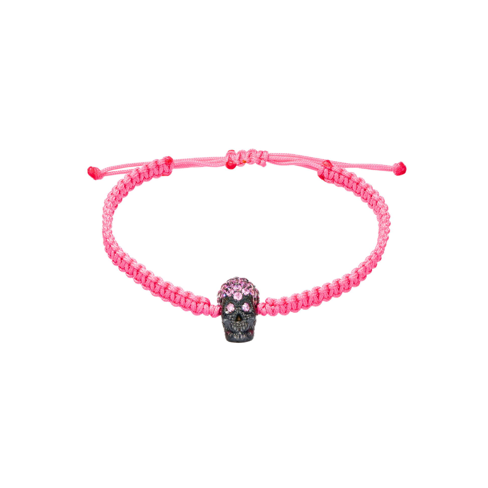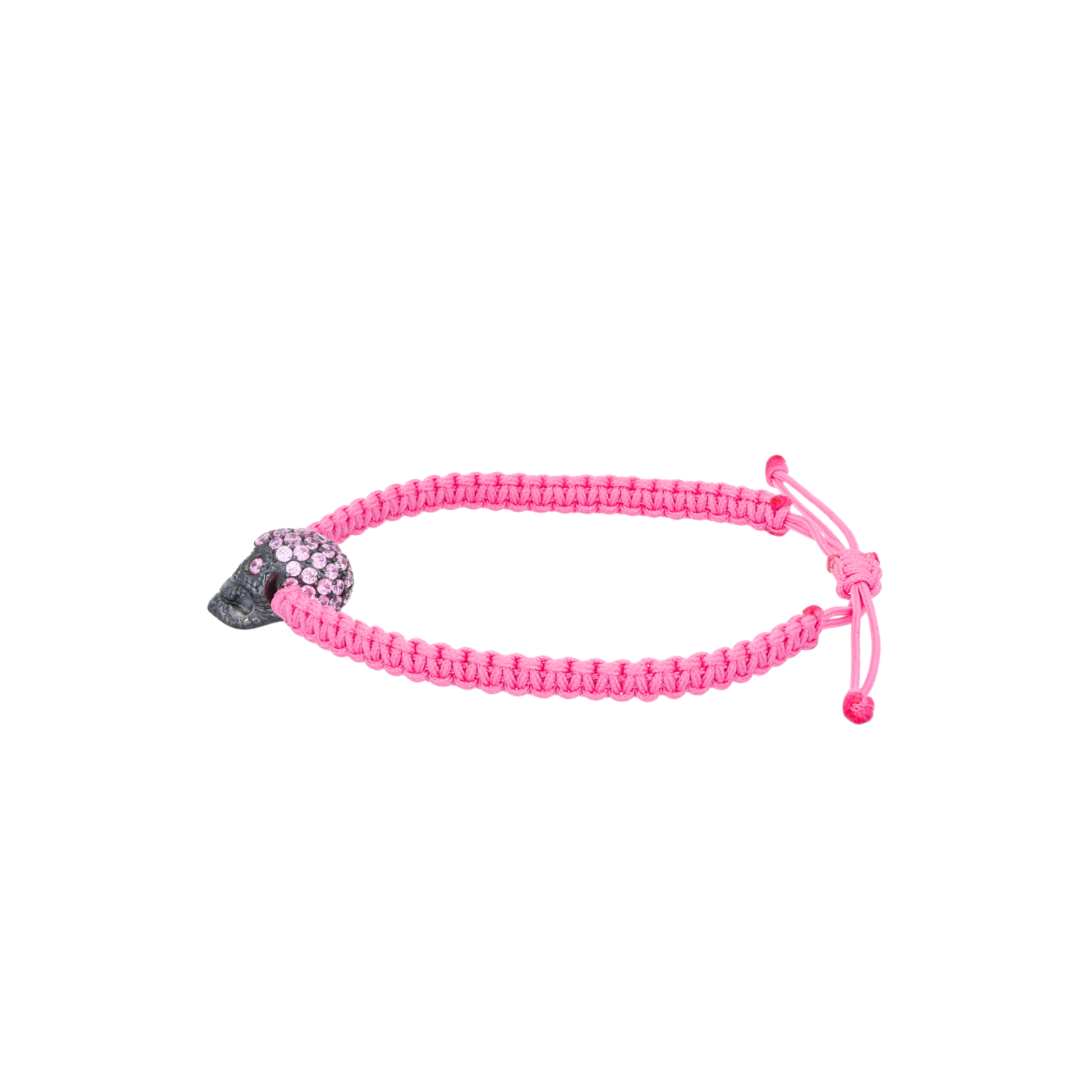 Pink Braided Bracelet With Black Pavé Skull With Pink Stones