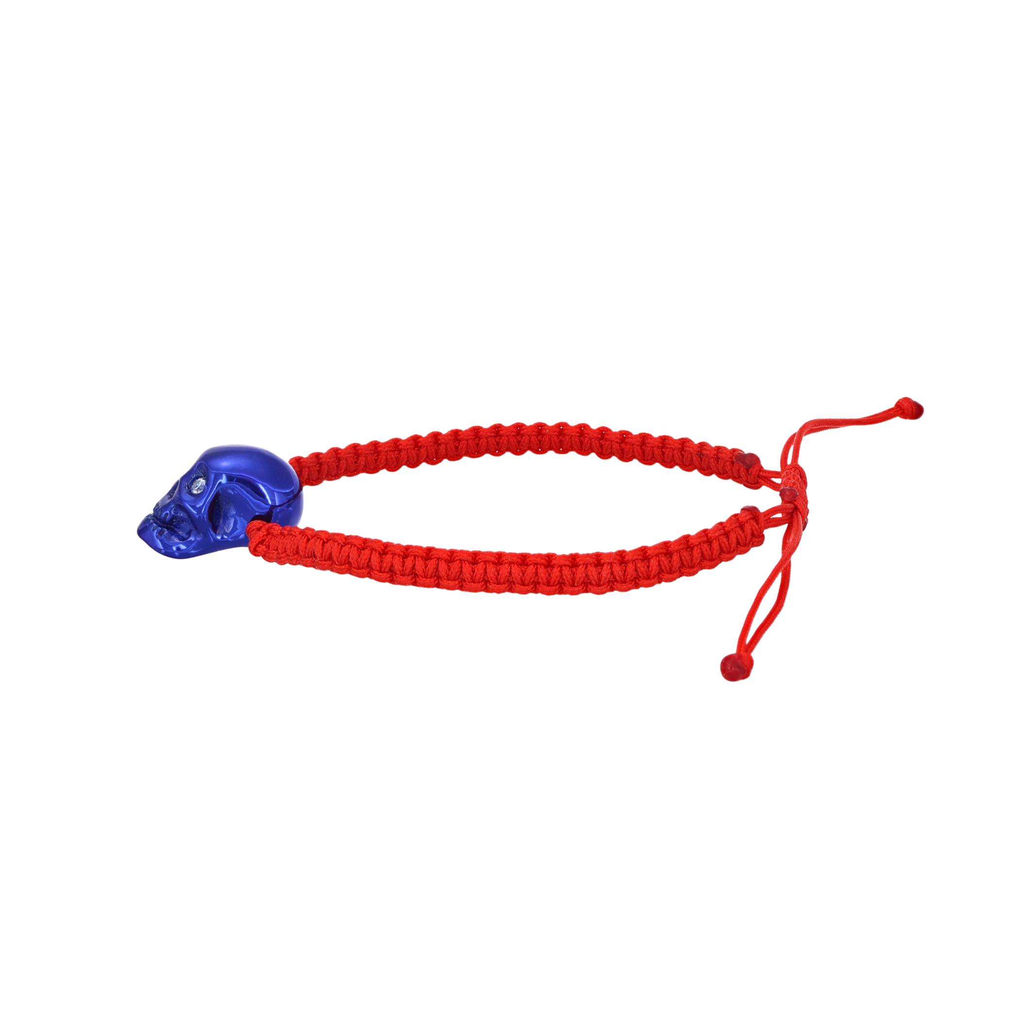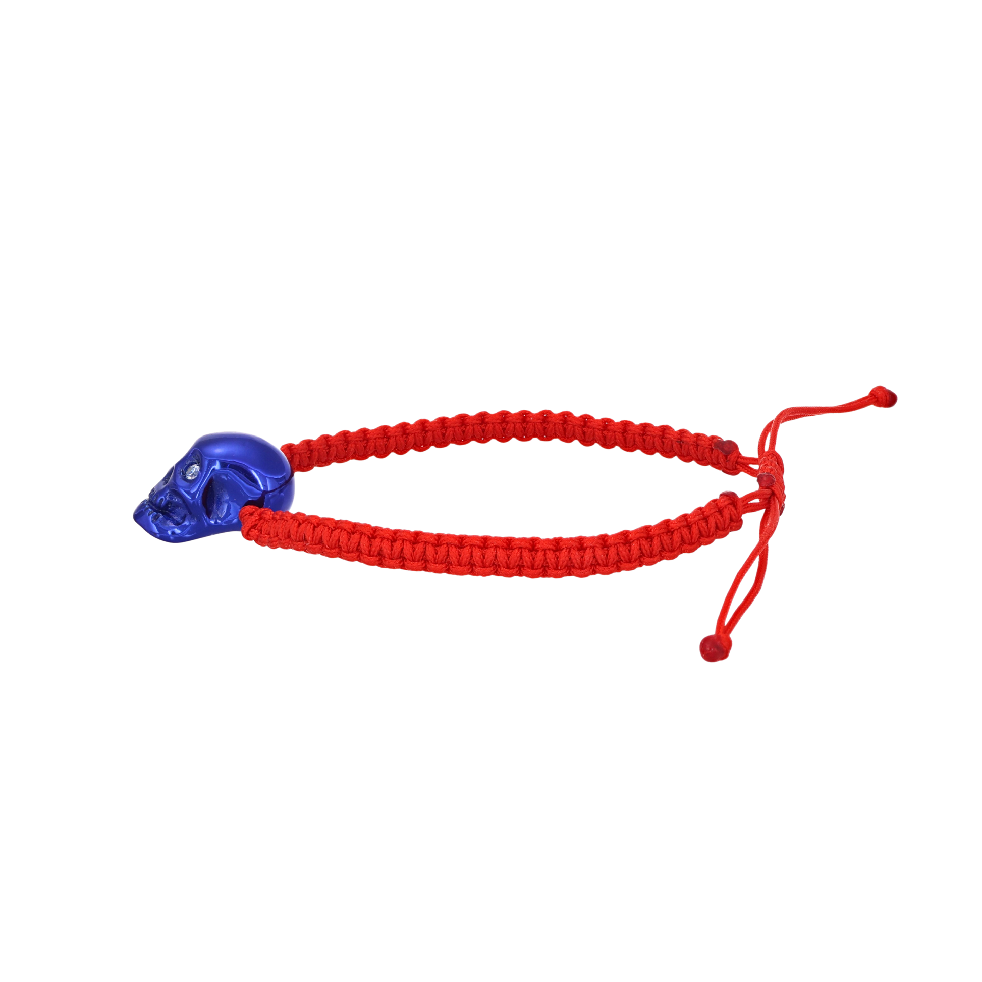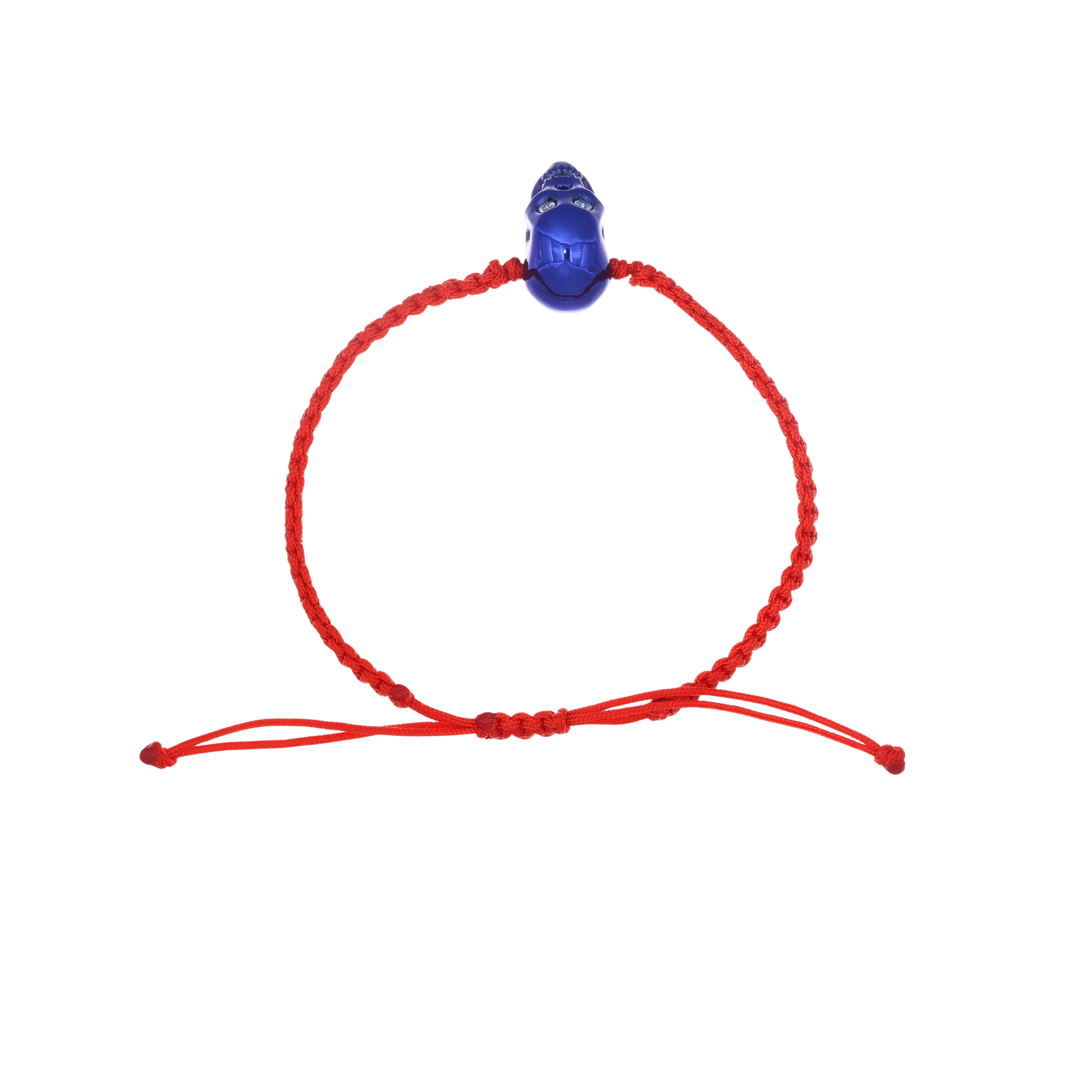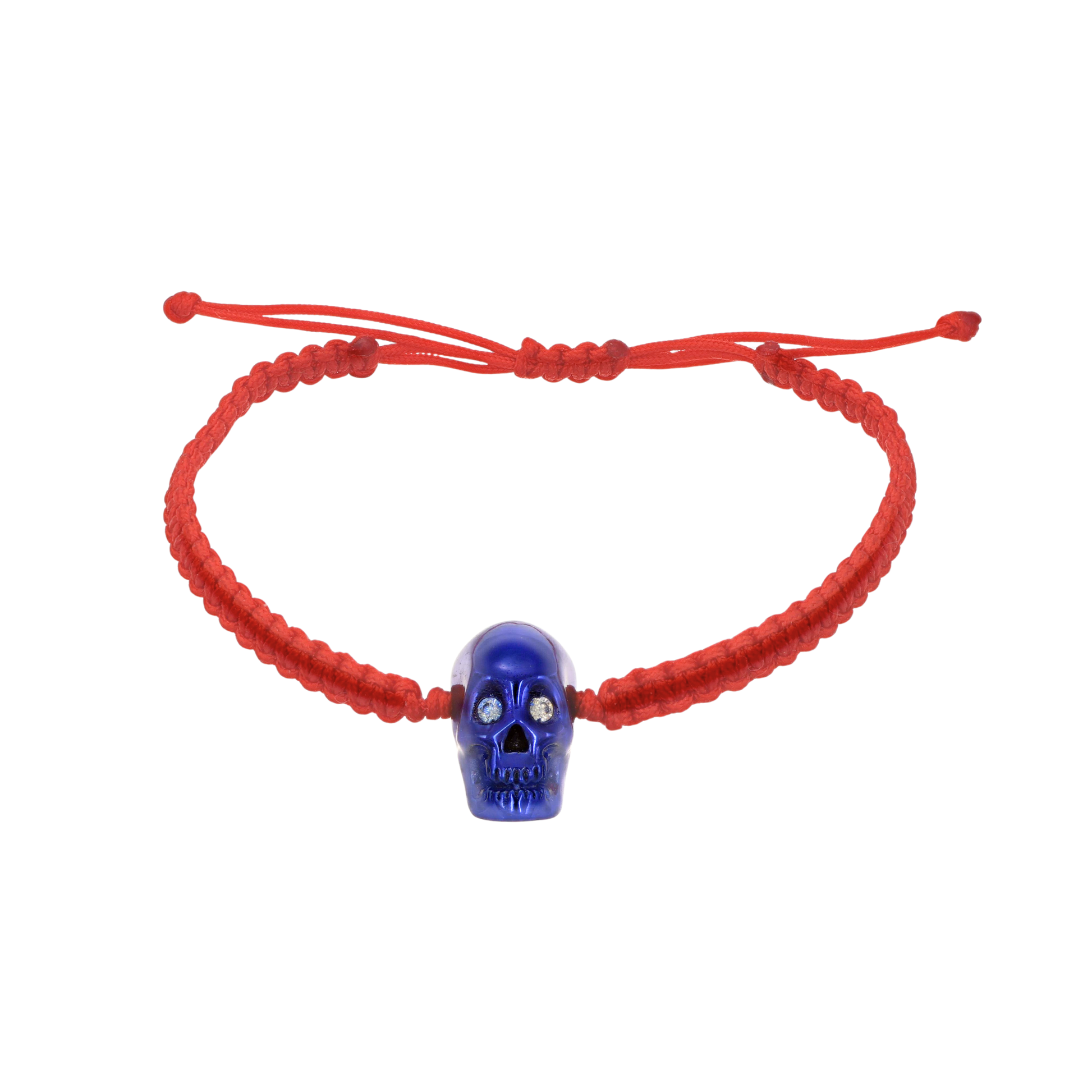 Red Braided Bracelet With Smooth Skull Blue Nanoceramic And White Stones