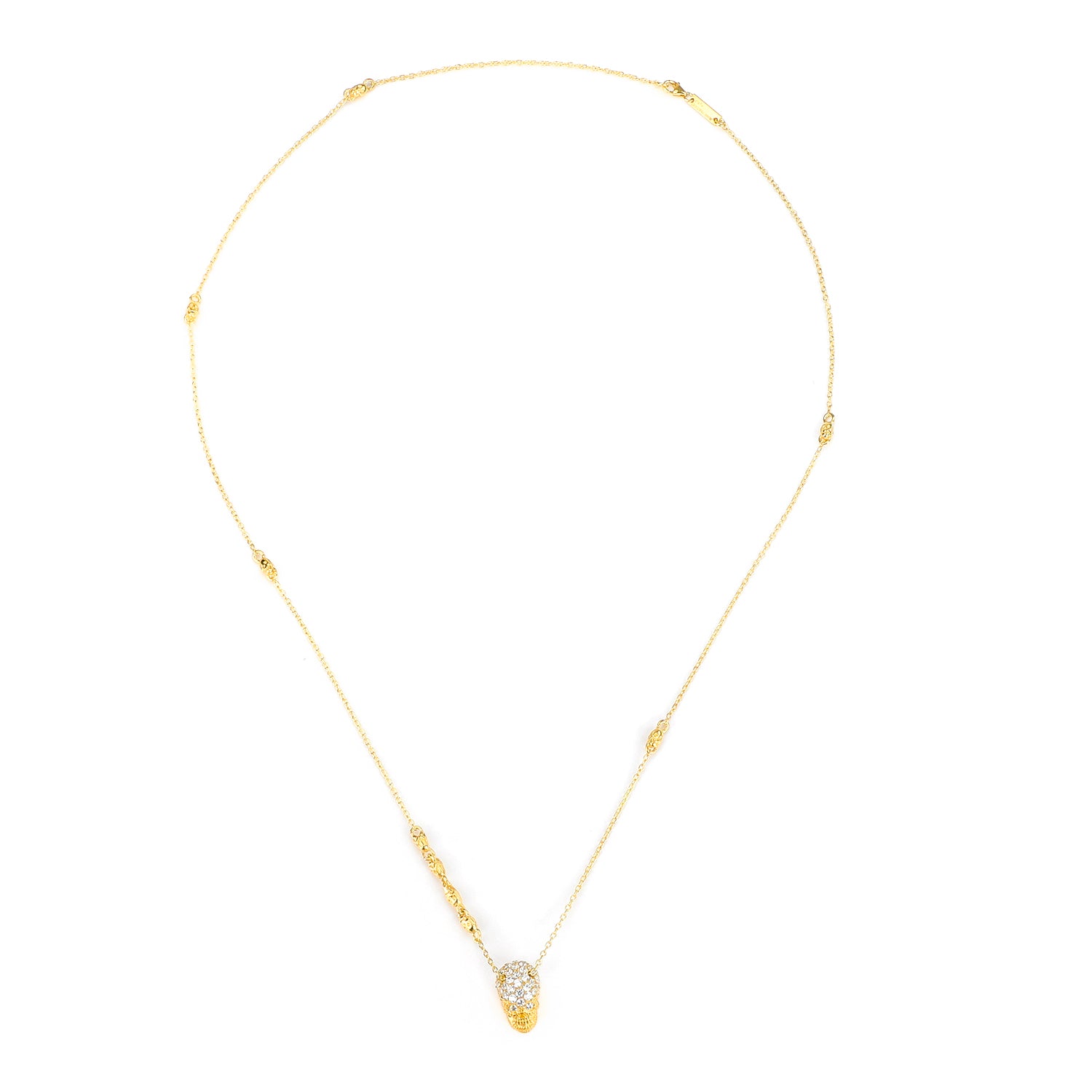 The surface is adorned with a delicate pavé of stones, hand-set with extreme precision, adding brightness and depth to every detail of the face. The result is a piece with great visual impact, capable of combining symbolism and modernity.