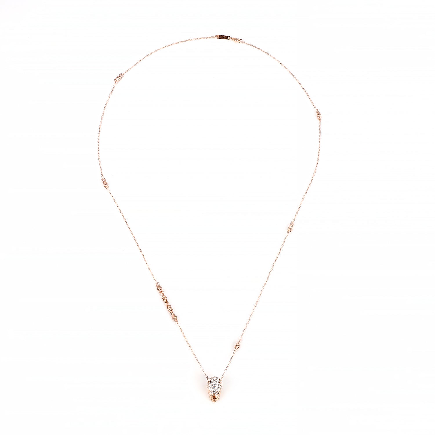 Pink Pavé Skull Necklace With White Stones