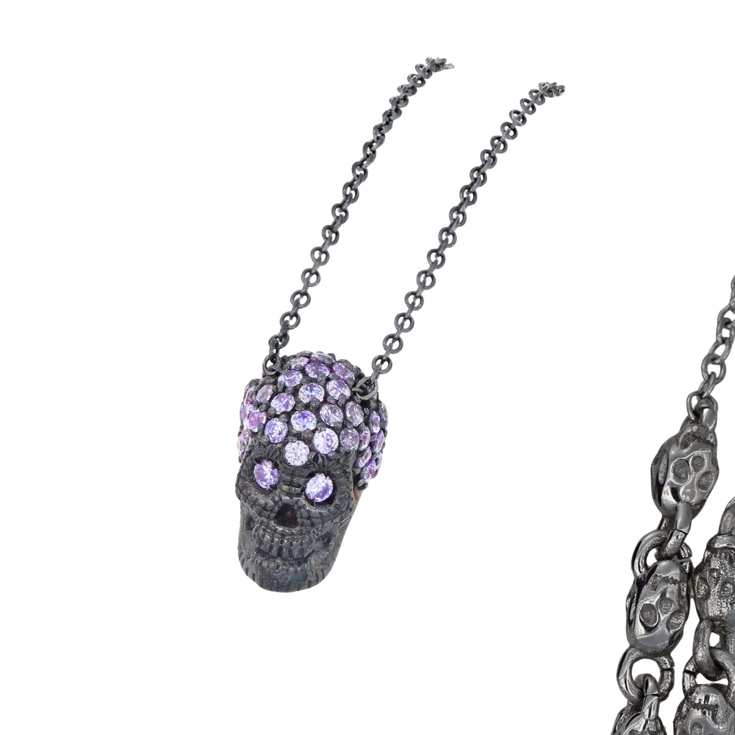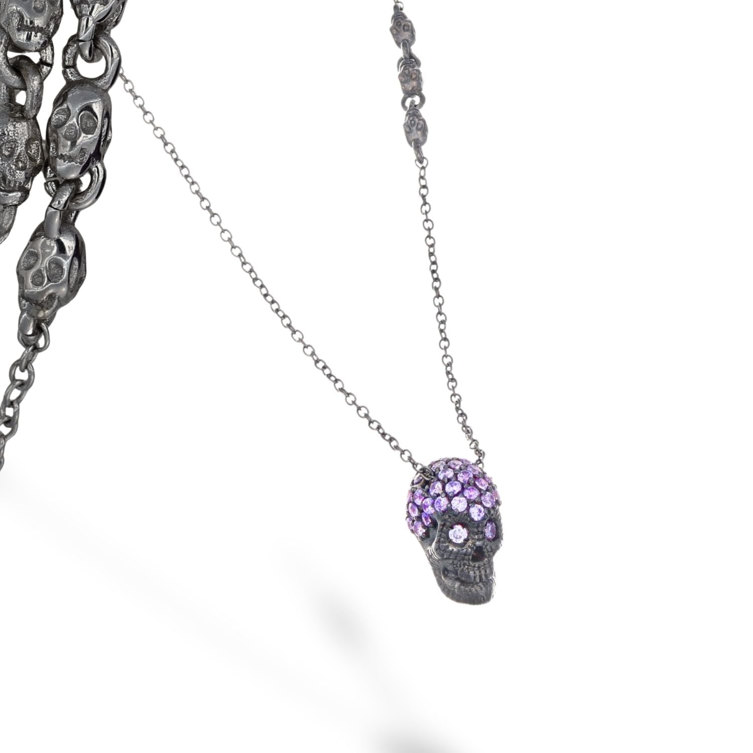 Black Pavé Skull Necklace With Violet Stones