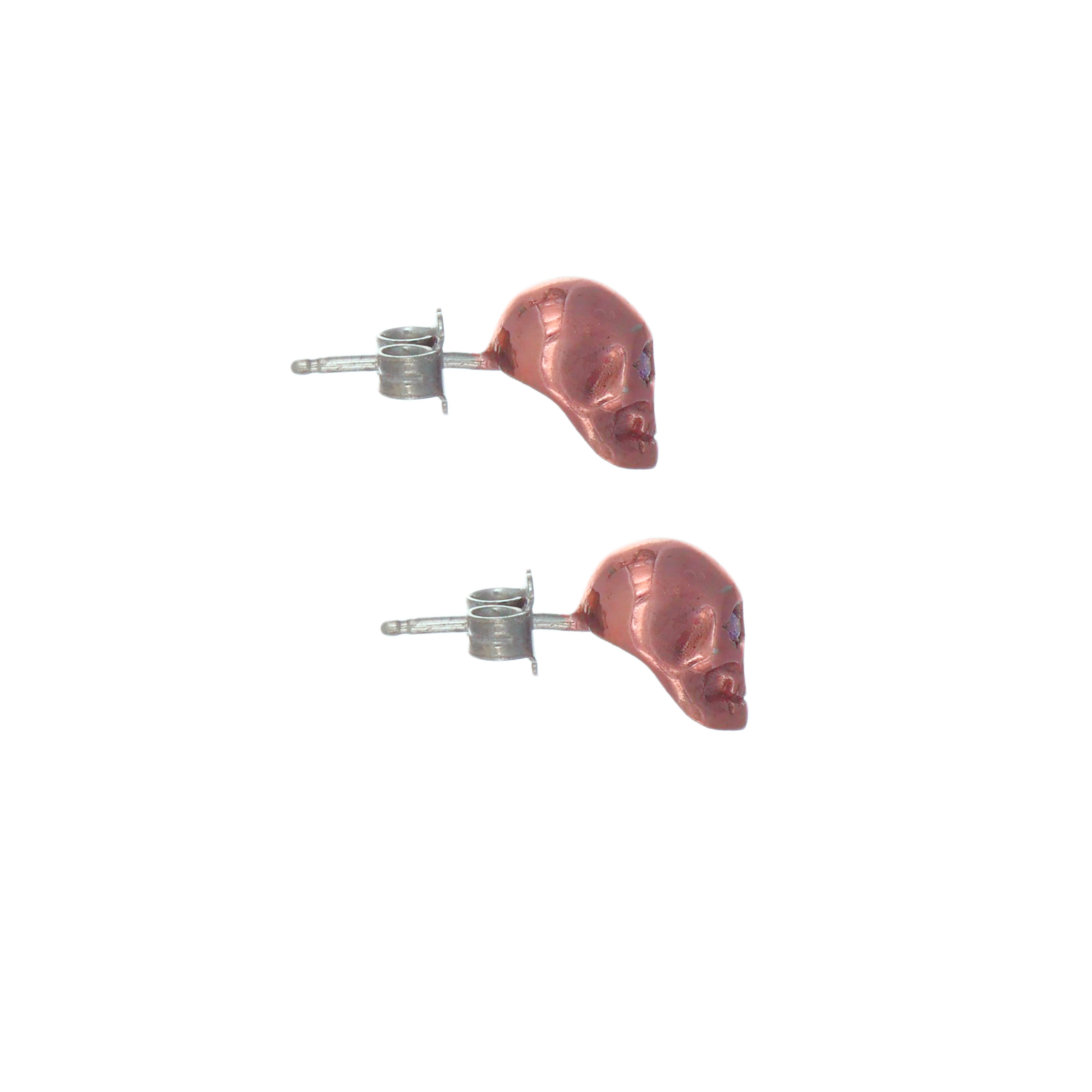 Smooth Skull Earrings With Pink Nanoceramic Coating And Pink Stones